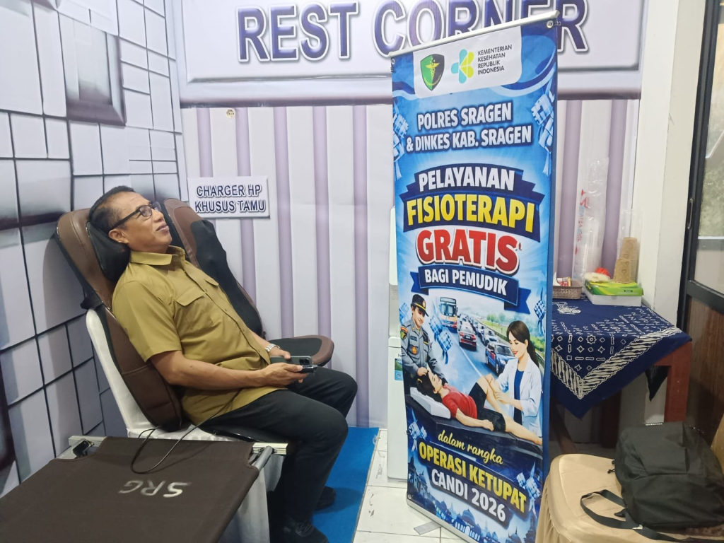 Dalam semangat Operasi Ketupat Candi (OKC) 2026 yang mengedepankan pelayanan humanis, Pos Terpadu Alun-Alun Polres Sragen tidak hanya berfungsi sebagai pusat pengamanan, tetapi juga bertransformasi menjadi oase bagi para pemudik. Di lokasi yang strategis di jantung kota Sragen ini, Polres Sragen menghadirkan inovasi berupa Fasilitas Istirahat yang nyaman dan tertata rapi bagi pengendara yang ingin melepaskan lelah. Fasilitas ini dirancang untuk memastikan pemudik dapat mengembalikan kebugaran tubuh sebelum melanjutkan perjalanan, demi menjaga keselamatan berkendara di momen puncak arus mudik dan balik Idul Fitri 2026.