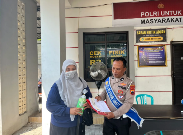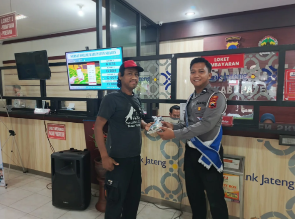 Sragen, Sabtu 1 November 2025 – Jajaran Satuan Lalu Lintas (Satlantas) Dengan berbagai inovasi, Duta Pelayanan Samsat terus meningkatkan pelayanan publik yang modern, transparan, dan berorientasi pada kepuasan masyarakat, Dalam rangkaian program “Polantas Menyapa”, petugas Satlantas Polres Sragen kegiatan pemberian bantuan sosial (Bansos) berupa paket Sembako kepada salah seorang wajib pajak di Samsat yang hadir pertama dalam pengurusan pajak 5 tahunan dan tanpa tunggakan. Hal ini juga salah satu cara mempererat hubungan personel sat lantas polres sragen dengan masyarakat.