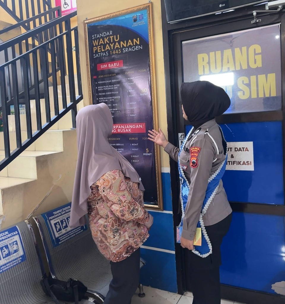 Rabu, 5 November 2025 – Satuan Lalu Lintas (Satlantas) Polres Sragen terus berinovasi dalam pelayanan Administrasi kendaraan bermotor di Sistem Administrasi Manunggal Satu Atap ( Samsat ). Melalui program humanis bertajuk “Polantas Menyapa”, petugas kepolisian aktif berinteraksi dengan masyarakat untuk memberikan edukasi dan sosialisasi standar pelayanan Samsat Sragen secara langsung.